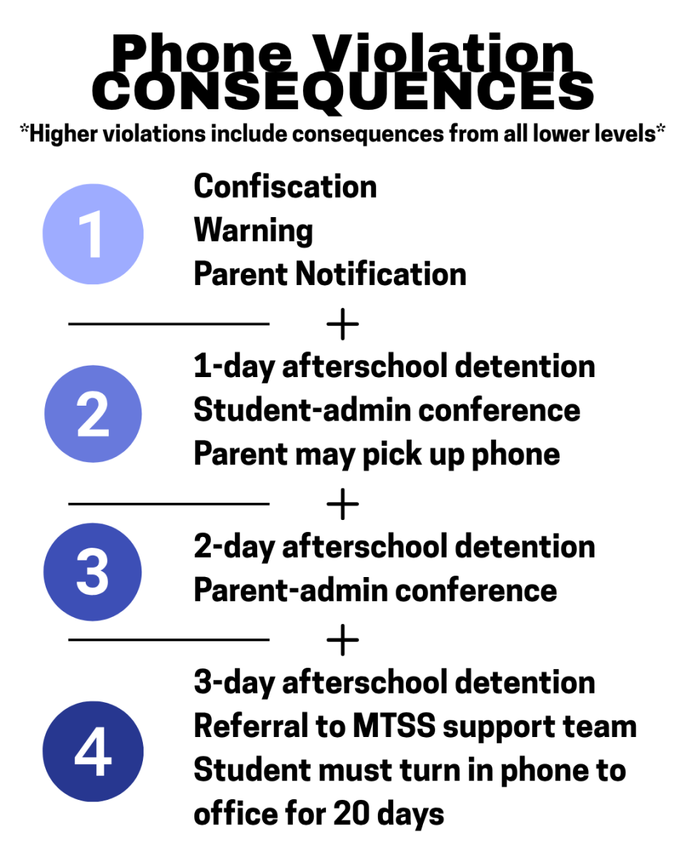 The process of reporting cellphone violations was established before the school year began. Teachers were briefed on the procedure and the ensuing consequences for students in violation.